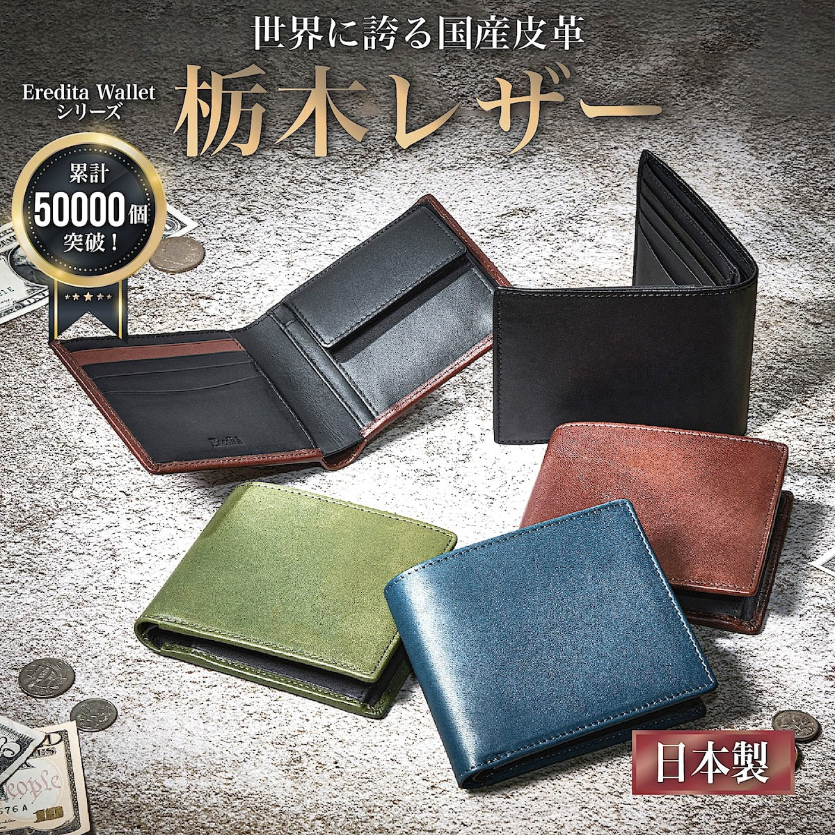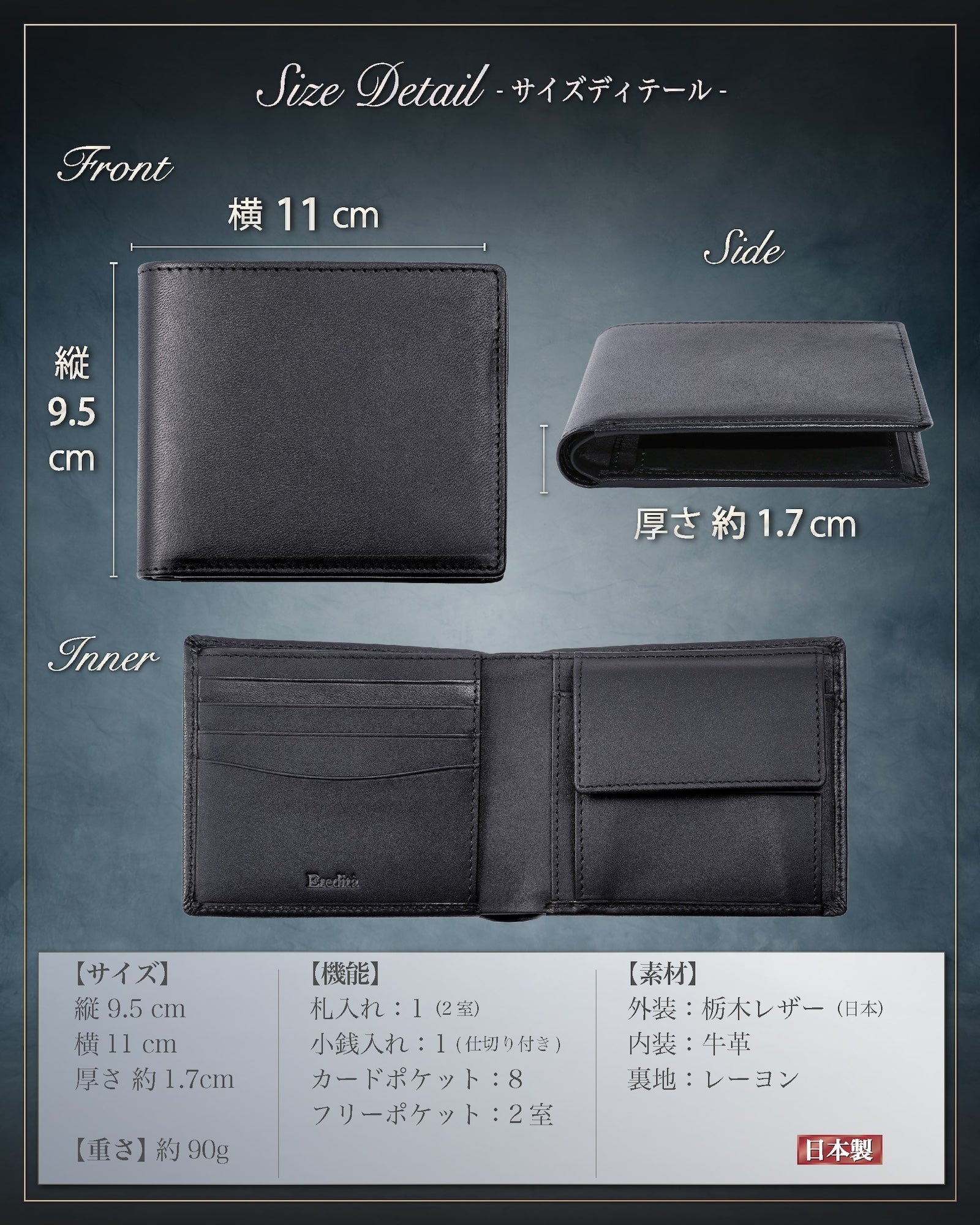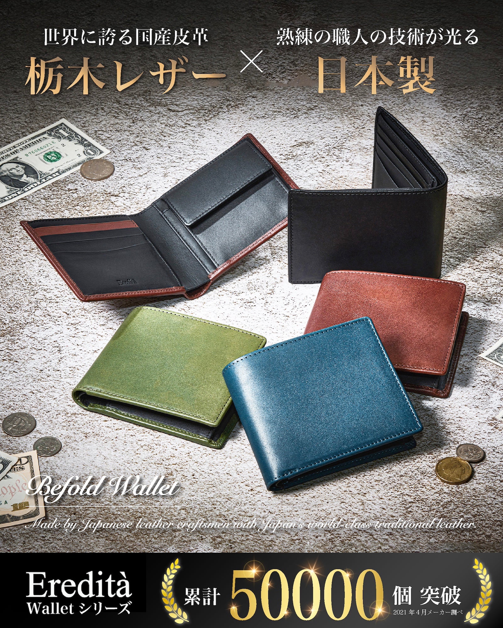 Eredita(エレディータ) 栃木レザー 二つ折り財布 メンズ 日本製 WL16