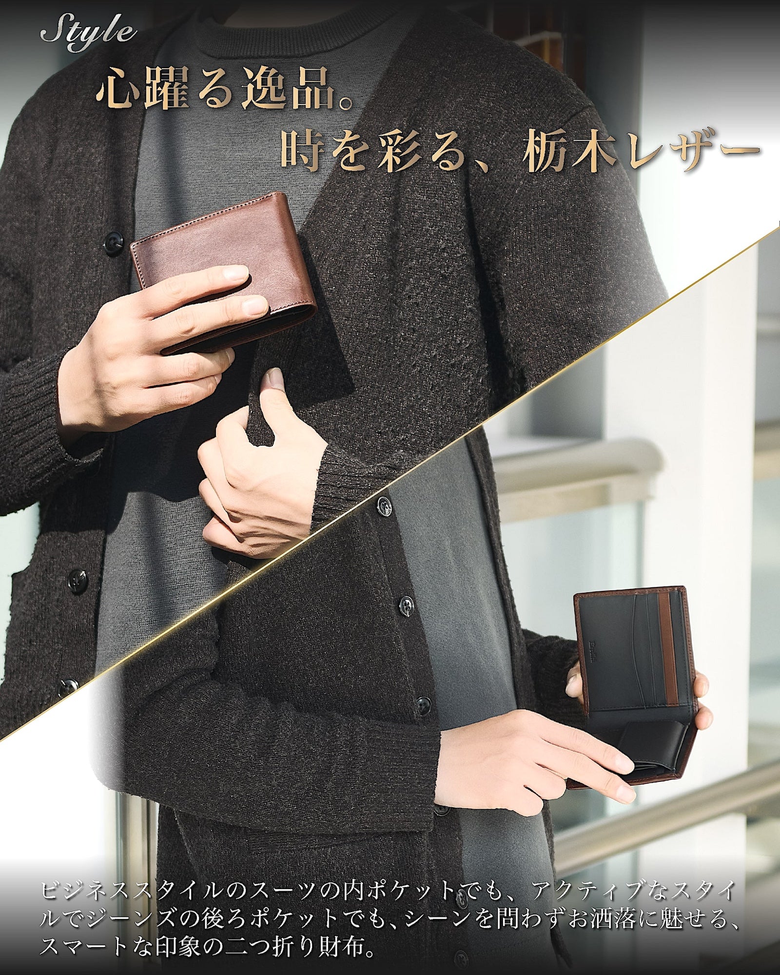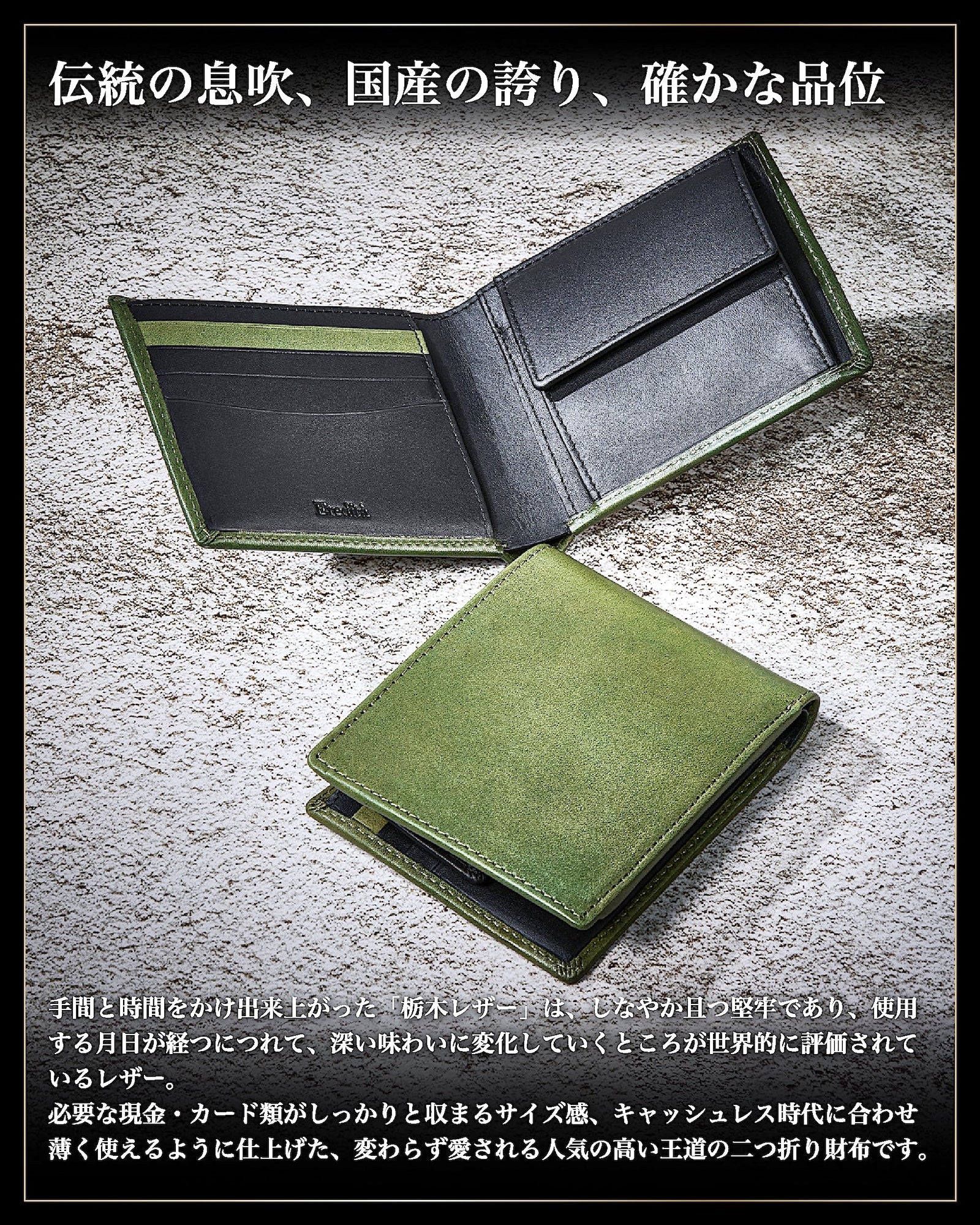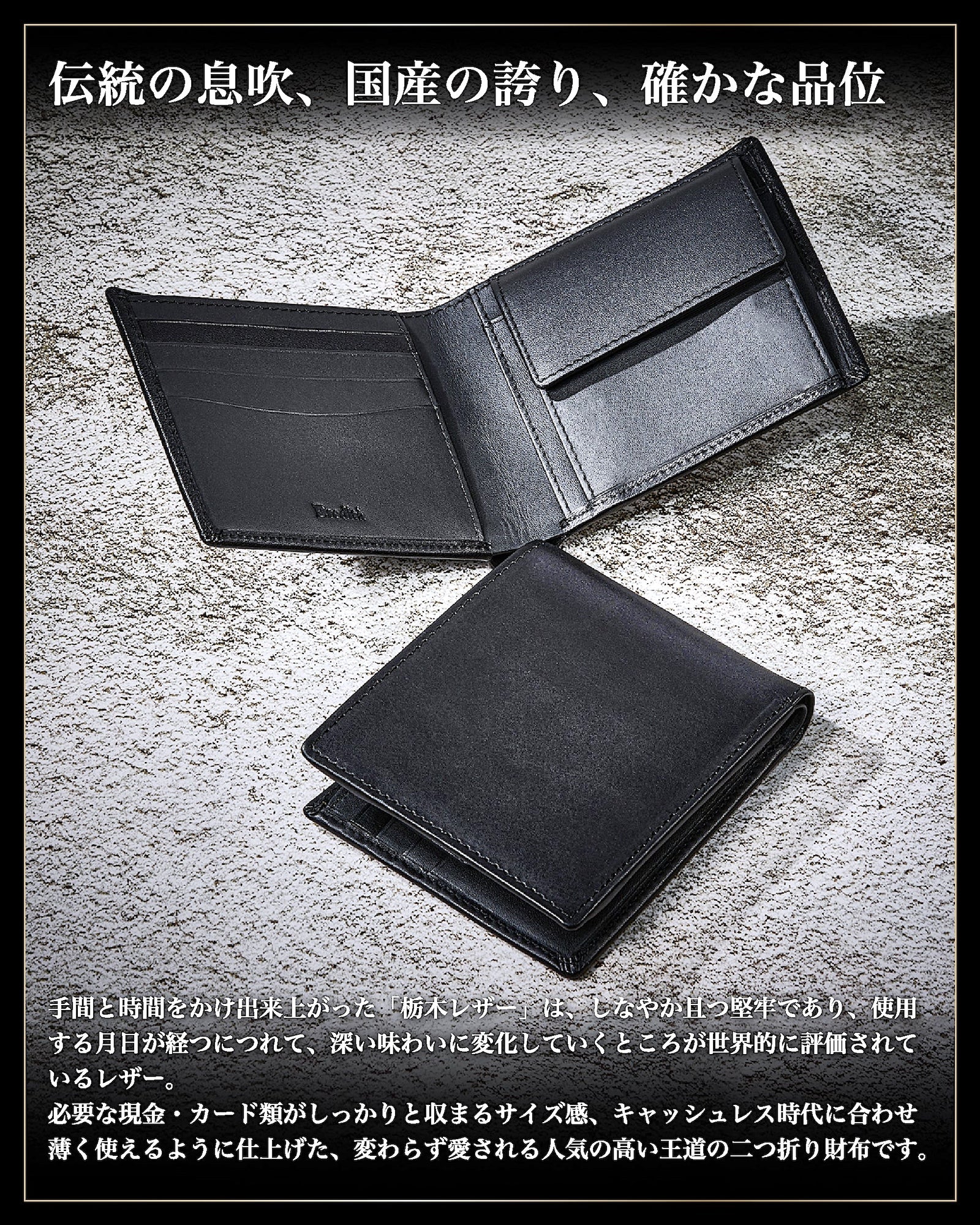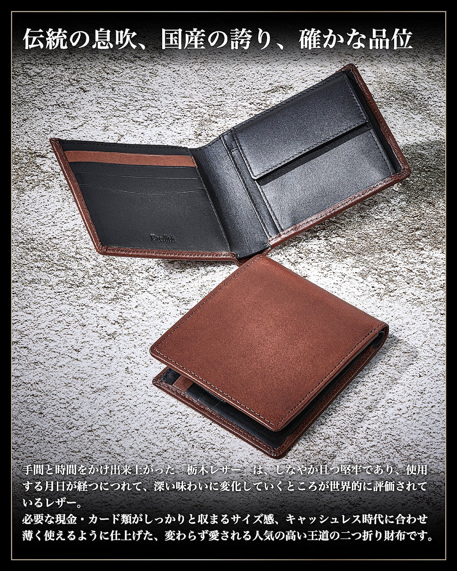 ✅ 【 日本製 栃木レザー 王道の 二つ折り 財布 】