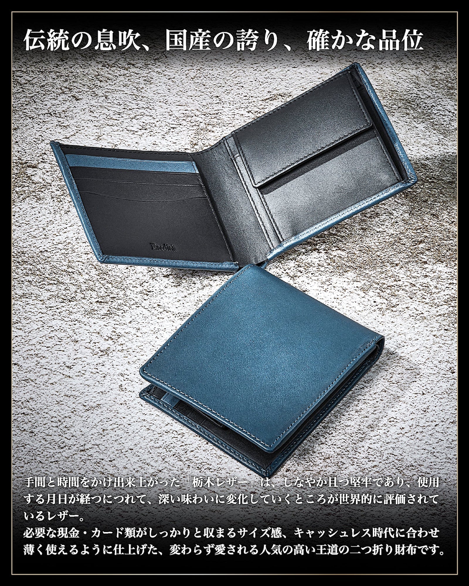 創業1937年の日本の ブランド 皮革を手がける 一流の革職人が作る 「 栃木レザー 」で制作した 日本製 の 栃木レザー メンズ財布 です。